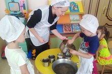 Дети подготовительной группы вместе с мамой Алины приготовили вкусное печенье. Танзиля Ренатовна поделилась секретом приготовления песочного теста. Благодарим маму Алины за сотрудничество с детским садом!