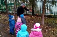 Наблюдение во 2 группе раннего возраста за елью, растущей на участке детского сада. Цель наблюдения: показать особенности ели, по которым ее легко выделить среди других деревьев (ветви покрыты зелеными иголками, похожа на пирамидку, потому что вверху ветки короткие, а книзу становятся все длиннее и длиннее).