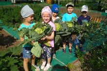Ребята старшей группы дружно поработали в огороде- убрали лук. 23.08.2019