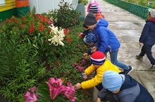 Все цветочки разные-белые и красные,Жёлтые и синие- все цветы красивые.Как прекрасен каждый цветЛучше нашей клумбы нет! -