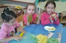 Воспитатель Шакирова Л.Т.провела интересную беседу с детьми средней группы о пользе овощей, богатых витаминами. Во время беседы дети увлеченно рассказывали о том,какие овощи растут у них в огороде на грядке и как они помогают мамам и папам собирать урожай.Затем все вместе читали поучительный рассказ «Волшебный суп». После прочтения рассказа дети с удовольствием играли в сюжетно-ролевую игру»Магазин», где побывали в роли покупателя и продавца.Еще интереснее оказалась игра «Чудесный мешочек». Дети на ощупь отгадывали овощи. В этот день они узнали много интересного и полезного об овощах.