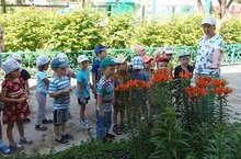 Балаларны чәчәкләрнең характерлы билгеләре белән таныштыру, чәчәкләргә карата сакчыл караш тәрбияләү, бакчабызда үсә торган чәчәкләрне таный белүләрен максат итеп, уртанчылар төркеме балалары чәчәкләрне күзәттеләр.