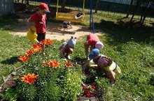 С целью формирования бережного отношения к цветам и развития желания ухаживать за ними, а также воспитывать любовь к прекрасному, красоте окружающего мира, на участке подготовительной группы, дети совместно с воспитателями разбили цветник. Им нравиться поливать и пропалывать цветы. Они знают много о них, знают названия всех цветов за которыми ухаживают.