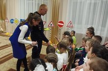 В рамках тематической недели «Осторожный пешеход» был организован конкурс «Самый оригинальный дорожный знак» . Итоги конкурса были подведены в конце данного мероприятия. Ребят наградили грамотами и призами. Ильнур Дамирович и Гузель Назифовна подарили детям светоотражающие элементы для безопасного движения юных пешеходов в темное время суток, а также дидактические пособия. Данное мероприятие было проведено на достаточно высоком уровне и послужило основой для дальнейшей мотивации дошкольников по изучению правил безопасного поведения на дороге. Благодарим сотрудников ОГИБДД и надеемся на дальнейшее сотрудничество.