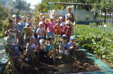 Дети средней группы вместе с воспитателем Зульфией Мислахутдиновной собирают урожай огурчиков.