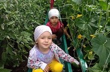 Ребята второй младшей группы собирают первый урожай. 09.07.2018