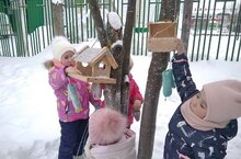 На прогулке дети старшей разновозрастной группы угостили птиц крупой, которые сами принесли из дома. Подкормка зимующих птиц приносит пользу не только пернатым, но и в обучении и воспитании детей. Дети через беседы, познавательные занятия и наблюдения узнают о различных видах птиц своей местности, узнают характерные особенности внешнего вида, поведения, учатся заботиться о птицах, испытывают радость от осознания того, что, делясь крохами, подкармливая птиц, можно спасти их от гибели.