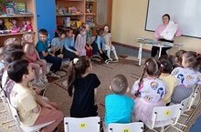 "Хезмәт төбе - хәзинә" атналыгы кысалыгында, төрле яшьтәге зурлар төркемендә - Ләйсән Дамировна балаларны китапханәче һөнәре белән таныштырды. Ул үз һөнәре турында сөйләп, китапханәдә үз-үзеңне тоту кагыйдәләре белән таныштырды. Китапка һәрчак сакчыл караш кирәклеген аңлатты. Ахырда балалар һәрберсе мәрҗәннәрдән беләзек җыйдылар.