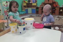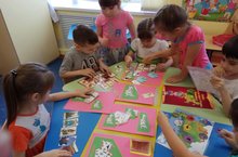 Кулдан ясалган дидактик уеннарны балалар бик яратып уйныйлар. Ралина белән Илһам да "Серле чиләк"тән алынган әйберләрне төркемнәргә бүлергә өйрәнәләр.