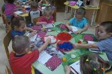 Дети 2 младшей группы сделали флаг России из шерстяных ниток.