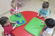 Дети 1 младшей группы очень любят играть с кинетическим песком. Он очень мягкий, а во время работы руки малышей остаются чистыми. Игра с кинетическим песком - это, в первую очередь, развитие мелкой моторики рук и тактильных ощущений.Так же, при игре с песком реализуются следующие цели: