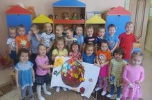 Вторая младшая группа поздравляет своих бабушек и дедушек "С днем пожилых людей",они оформили корзину цветами,которые сделали сами.
