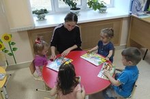 Педагог-психолог Люция Тимербаевна занимается с детьми средней группы.