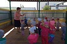 Сегодня в детском саду организовали летний концерт. Каждой группе было дано задание приготовить творческий номер. Все группы отнеслись очень ответственно. Первая младшая группа станцевали русский народный танец с деревянными ложками "Мы матрешки", вторая младшая группа - мальчики станцевали современный танец "Брек данс", дети средней группы пригласили выпускников и исполнили песню "Жил да был Бродобрей" с движениями. Старшая группа девочки - спели песню "Лето, лето, лето ты какого цвета?", а мальчики татарские частушки. Воспитатели в свою очередь тоже решили показать сюрприз и показали сказку "Пых" с игрушками Би-ба-бо. Дети с удовольствием танцевали, веселились и чувствовали себя настоящими артистами, так как беседка была оформлена в виде сцены. В конце прошла веселая дискотека.