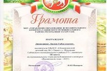 По итогам муниципального этапа конкурса "Воспитатель года-2017" воспитатель нашего детского сада Димитриева Л.Г. награждена за 3 место грамотой МКУ "Управление образования Исполнительного комитета Сабинского муниципального района РТ". От всей души поздравляем Лилию Габдулхаевну и желаем новых успехов в воспитании подрастающего поколения!