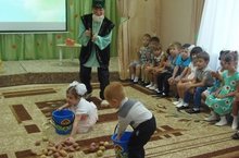 Бүген безнең бакчабызда бик күңелле бәйрәм – “Бәрәңге бәйрәме” узды. Балалар бәрәңге турында җырлар, шигырьләр сөйләделәр, һәр төркем бәрәңге турында күргәзмә ясады. Кунакка Уңыш бабай килде. Балалар бәрәңге турында видео – фильм карадылар. Командаларга бүленеп “Кем күбрәк җыя”, “Бәрәңгене тап”, “Бәрәңгене утырту һәм җыю” уеннарын уйнадылар. Уңыш бабай үзенең күчтәнәчләре белән балаларны тагын да сөендерде. Бәйрәм бик күңелле үтте.