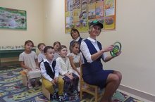 В уголках для родителей была размещена информация по теме. Итоговым мероприятием 3 октября 2016г было проведено развлечение по изучению правил дорожного движения «Зеленоглазое такси». На мероприятие был приглашен ведущий специалист организационно- аналитического отдела ГКУ «Дирекция финансирования научных и образовательных программ БДД РТ» ЗакировД.Р. Динар Рамилевич с детьми старшей и подготовительной группы провел беседу о правилах дорожного движения; познакомил с дорожными знаками – предупреждающими, запрещающими и информационно-указательными; разыграл ситуацию «Пешеход на дороге», где подробно объяснил, как нужно переходить улицу; организовал просмотр мультфильмов.
