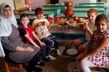 Бакчабызда әдәплелек дәресләре атналыгы барды. Балаларны кунакчыл булырга, кунакларга хөрмәт күрсәтергә, үз-үзеңне тоту кагыйдәләрен ныгыту максатыннан, бүген татар теле тәрбиячесе Мәннанова А.Х. мәктәпкә әзерлек төркемендә йомгаклау шөгыле уздырды. Балалар “поезд”га утырып әбигә кунакка бардылар. Әбигә табын янында үз-үзеңне тоту кагыйдәләрен сөйләделәр. Соңыннан әби балаларны чәй белән сыйлады. Балалар бик шатланып, әбигә рәхмәтләр әйтеп “поезд”га утырып балалар бакчасына кайттылар.