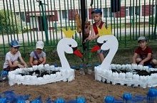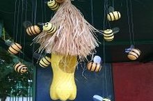 Воспитанники первой младшей группы с помощью воспитателя сделали пчел и украсили ими участок.