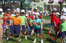 Сегодня в нашем детском саду в праздничной обстановке открыли детскую спортивную площадку, которую своими руками сделали Александр Иванович, Сергей Валерьевич (сторожа) и Лилия Габдулхаевна (воспитатель по физкультуре). В гости на праздник были приглашены Спортакус и Стефани. На площадке можно играть в хоккей на траве, волейбол, баскетбол, а зимой она может превращаться в лыжную трассу.