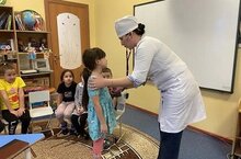 В рамках недели «Без труда - нет плода» в старшей разновозрастной группе прошла необычная встреча воспитанников с мамой Сергеева Родиона Татьяной Анатольевной, работающей фельдшером. Она рассказала детям о важности профессии врача, показала медицинские инструменты и даже разрешила попробовать себя в роли маленьких докторов!Дети узнали много нового о здоровье, профилактике болезней и первой помощи. Фельдшер подробно объясняла назначение каждого инструмента и демонстрировала, как правильно измерять температуру, проверять давление и накладывать повязки.Встреча получилась познавательной и увлекательной, ведь дети проявили огромный интерес и задавали массу вопросов. Теперь многие дети мечтаю стать врачами, спасающими жизни людей!Такая инициатива родителей помогает воспитывать уважение к медицинским работникам и формирует правильное отношение к своему здоровью. Спасибо Татьяне Анатольевне за её труд и желание поделиться своими знаниями с воспитанниками нашего детского сада!