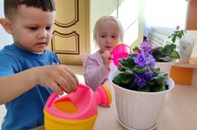 Мы цветочки поливаем,