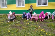 Задачи: Уточнить знания об одуванчике (обратить внимание на начало цветения); развивать наблюдательность, формировать умения рассматривать объект наблюдения.