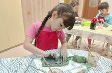 В нашем кружке "Долепка" во всю идёт творческий процесс. Дети из старшей подгруппы изучают свойства голубой глины. Голубая глина тяжела в лепке, она упругая и жёсткая благодаря содержанию органических веществ. А вы знали, что голубая глина мелкозернистая осадочная горная порода, вторичный продукт земной коры?