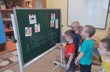 Сегодня на занятии ребята старшей группы познакомились со звуком М. Поиграли в словесные игры, где встречается этот звук, закрепили свои знания, выполняя задания в рабочих тетрадях.