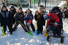 Волонтёры старшей группы привнесли частичку тепла, добра и заботы, помогая коррекционной группе расчистить дорожки от снега. И даже покатались вместе на ледянках.