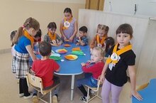 На языке детей «дети волонтёры» означает – делай добрые дела. Все дети любят играть, поэтому дети подготовительной группы посетили группу младшего дошкольного возраста, с целью социализации и установления добрых взаимоотношений, проявления заботы о младших, играли с ними в различные игры.