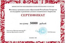 Представив экспонаты для участия в Фестивале наш район набрал в каждом направлении неплохие баллы и удостоился звания Лауреат Фестиваля и награжден Сертификатом на сумму 50 000 рублей.