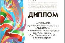 Балалар иҗат үзәгенең өстәмә белем бирү педагогы Альмира Дәүләтшина җитәкчелегендәге Саба гимназиясе һәм Юлбат урта мәктәбе укучыларыннан торган «Модерн» бию коллективы «Хореография» номинациясендә “Барыбызда биибез” һәм “Заманча рус биюе”ләрен тәкъдим иттеләр. Уңышлы чыгышлары өчен “Созвездие-Йолдызлык 2012” эстрада сәнгате яшьләр фестиваленең ДИПЛОМына лаек булдылар. Афәрин! Уңышлар телибез!