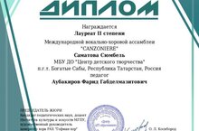 Ученица объединения вокальной студии «Нур» Саматова Сюмбель приняла участие в Международной вокально- хоровой ассамблее «CANZONIERE». Ассамблея проходит с целью...