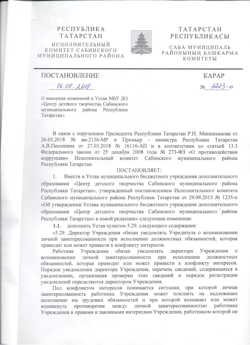 Постановление №1223-п от 06.08.2018 Изменения к Уставу Изменения к Уставу 2 стр