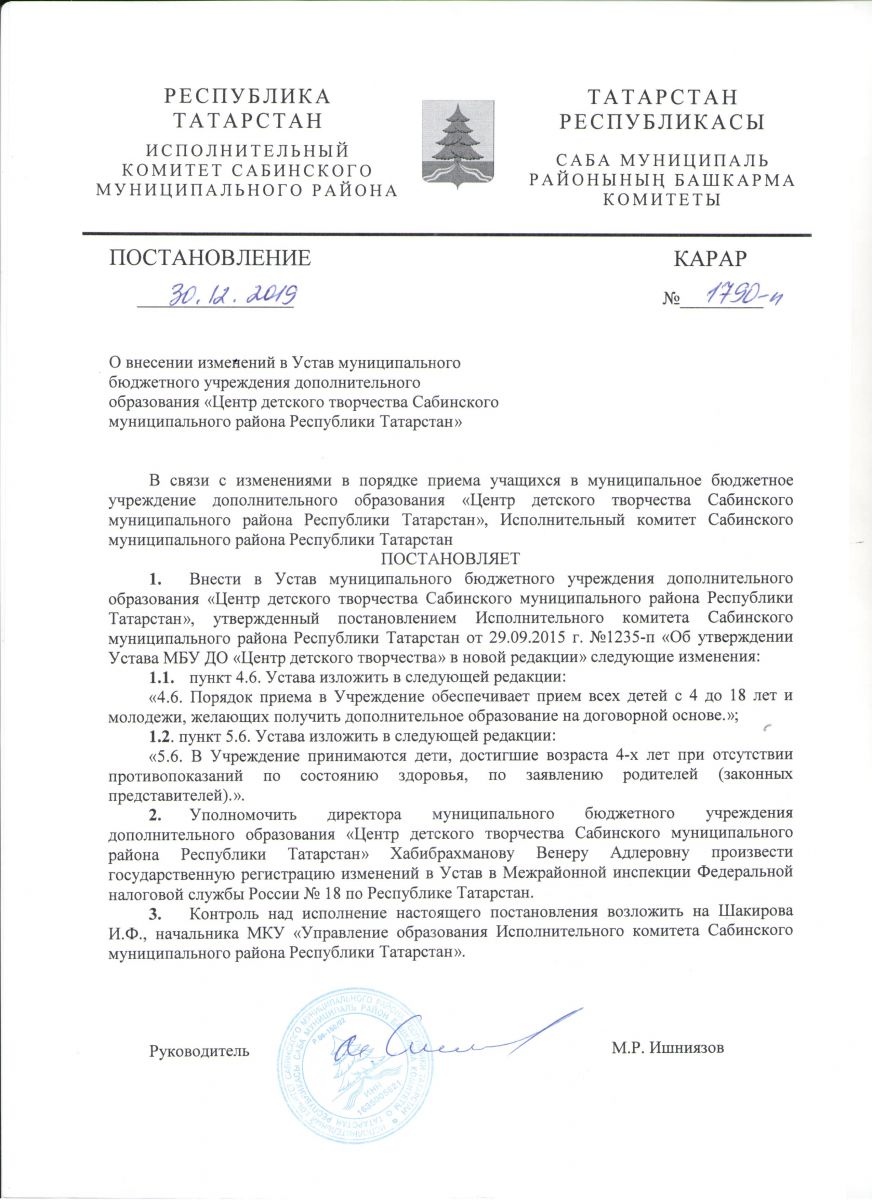 Муниципальное бюджетное учреждение дополнительного образования «Центр детского творчества Сабинского муниципального района Республики Татарстан»