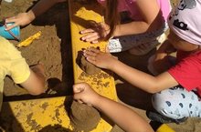 Ком -уеннар өчен менә дигән материал.Аны юешләп төрле әйберләр ясарга ясарга була. Ясаганны җимереп, яңадан төзергә мөмкин. Без зурлар төркеме балалары белән ком тартмасында юеш комнан төрле әйберләр ясап уйнадык.