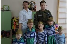 Ребятишки испытывали гордость, когда показали, как отжимаются. Померялись силой с гостем. Подарили песню «Бравые солдаты».