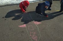 Карлар эреп, асфальт ачылгач акбур белән рәсем ясау мөмкинлеге туа. Уртанчылар төркеме балалары да бу мөмкинлекне кулдан ычкындырмыйча, асфальтка үзләре теләгән рәсемнәрен ясадылар. Балалар өчен акбур белән рәсем ясау үзе бер бәхет ул.
