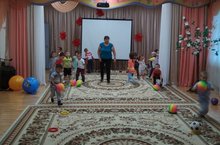Первая младшая группа начала эту неделю с утренней гимнастики и со спортивных игр. Целью игр является воспитание у детей любви к спорту. Дети играли игры с мячиком, с кеглями.