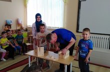 Бүген бакчабызның зурлар төркемендә Сыерчык дустыбызга оя ясарга ойрәндек. Безнең актив ата-аналар ярдәмендә, балалар гел яңа һөнәрләр белән танышалар. Бүген исә алар балта остасы һөнәре белән таныштылар. Балта остасының төгәллегенә исләре китте. Балта остасының һәр эшне башлаганда яхшы нәтиҗә өмет итергә кирәк, инструментлар өстәлнең гел уң ягында, ә такталар сул якта булырга тиеш, - дигән сүзләре уйландырды һәм сокландырды балаларны. Сыерчык дустыбызга, менә дигән оя әзер дә булды. Без канатлы дусларыбызны яратабыз һәм аларга ярдәм итәргә һәр вакыт шат.