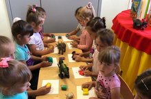 Ә бүген исә, тозлы камырдан ясаган хайваннарыбызның кипкәнлеген карап, һәрберсен үз төсенә буядык. Бала эшләгән эш, нинди булса да матур инде. Балалар үз эшләренә соклануларын белдерделәр, һәрбер динозаврны, әкәм-төкәмне күргәзмәгә куйдылар.