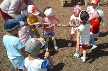 Сабантуеның тагын бер кызыклы ярышы - аркан тартышу. Бу ярышта командаларга тупланып, һәр бала узенең көчен сынап карады.Һәрбер үткәрелгән милли уен балаларга бик ошады,алар бик канәгать калдылар.