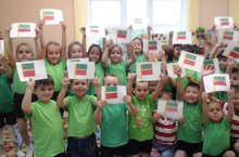 Балаларда туган телгә, туган илгә, аның табигатенә мәхәббәт, горурлану хисләре балалар бакчасында ук тәрбияләнә. Балаларның Татарстан Республикасының Дәүләт флагы турында белемнәрен арттыру, туры, тигез итеп ябыштыра алу күнекмәләрен камилләштерү максатыннан, буген, зурлар төркеме балалары, тәрбиячеләре Сафина Рәфисә Рәшитовна белән, Дәүләт флагын кисеп ябыштырдылар.Балалар Татарстан Республикасының Дәүләт флагы авторы Т.Г.Хаҗиәхмәтов турында да мәгълүмат алдылар. Аларда халкыбыз турында горурлык хисе тәрбияләнде .