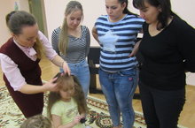 Воспитательница Гафиятуллина Ф.Р. продеманстрировала родителям как с утра, когда все торопятся на работу, можно сделать простую, но в то же время очень изящную причёску.