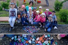 Темноглазый малахит.С детьми подготовительной группы украшали камни на участке детского сада. Детям очень понравился процесс. Ведь это естественно! Потому что у них появились и землянички, и улитки, и дельфинчики, горы, машинки, цветочки и многое другое. Ведь при помощи красок можно творить чудеса! И в этом дети сами убедились и стали наши камушки волшебными! (воспитатель Нигъматзянова Г.Р.)