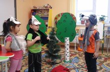 Буген уртанчылар төркеме балалары тәрбияче Сафина Рәфисә Рашитовна ярдәме белән Габдулла Тукайнын «Кәҗә белән Сарык маҗаралары” әкиятен сәхнәләштерделәр. Балаларга бик ошады, матур, сәнгатле итеп интонацияләр белән уйнадылар. Акыл үсеше белән сөйләм теленең үсеше нык бәйләнгән. Персонажлар сөйләмен сәнгатьле итеп сөйләү өстендә эшләгәндә, баланың сүз байлыгы арта, аваз культурасы, интонацияле сөйләү тәрбияләнә. Башкарылачак роль баланы чиста, аңлашылырлык итеп сөйләвен таләп итә. Сәхнәләштерелгән уеннар барышында, бала персонажлар өчен кайгырта, үзен алар урынына куя, булышу ысулларын таба, яхшылык hәм явызлыкка үзенең карашын күрсәтә. Баланы төрле яктан үстерә.