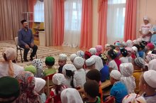 Корбан гаете бәйрәме уңаеннан, бакчабызга Саба Җәмигъ мәчетеннән Алмаз хәзрәт килде. Хәзрәт балаларга үгет-нәсыйхәт бирде, дога кылды. Балаларыбыз да үзләре белгән догаларны Алмаз хәзрәткә укып күрсәттеләр. Укыган догаларыбыз кабул булса иде!