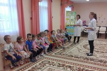 Сөйләм телен үстерү, узара дустанә мөнәсәбәт тәрбияләү максатыннан зурлар төркемендә балалар өчен театр почмагы булдырылды. Кашыклар театры, бармак театры, стакан театры, курчак театры һәм башка төрләрен балалар бик яратып кулланалар, уйныйлар.