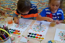 Көзге күренешләрне искә төшерү һәм көзге табигатьнең гүзәллеген күреп соклану максатыннан, тәрбияче Шигапова Динара Нурисламовна мәктәпкә әзерлек төркемендә рәсем шөгыле үткәрде. Балалар бармак техникасы белән краска ярдәмендә көзге агачларны ясадылар.